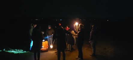 Am 05.01. traf man sich um 18 Uhr am Rentnerbänkle und machte sich mit Bollerwagen gefüllt mit Bier und Weißweinschorle in das benachbarte Blochingen auf. Über die Gemmingerstraße folgte die Route über das erste Kreuz an den Grünplanweg hoch mit kurzem Stopp.