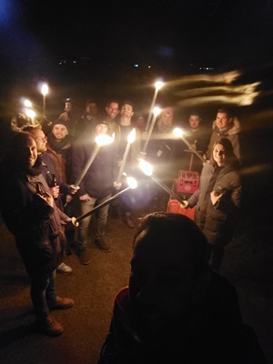 Weiter ging es dann mit einem Fackelzug auf der Landstraße bis ins Blochinger-Örtchen, wo das vom Dash übernommene Wirtshaus im Greutle schon auf uns wartete.
