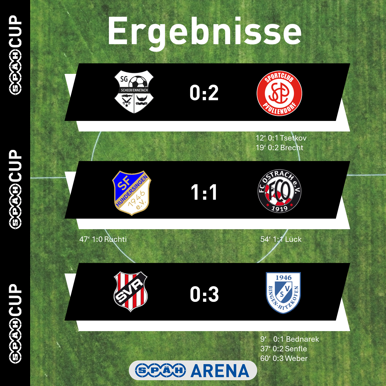 In der SPÄH designed acoustic Gruppe treffen die SF Hundersingen, die U21 des SC Pfullendorf, der FC Ostrach und der Gastgeber, die SG Scheer/Ennetach.
