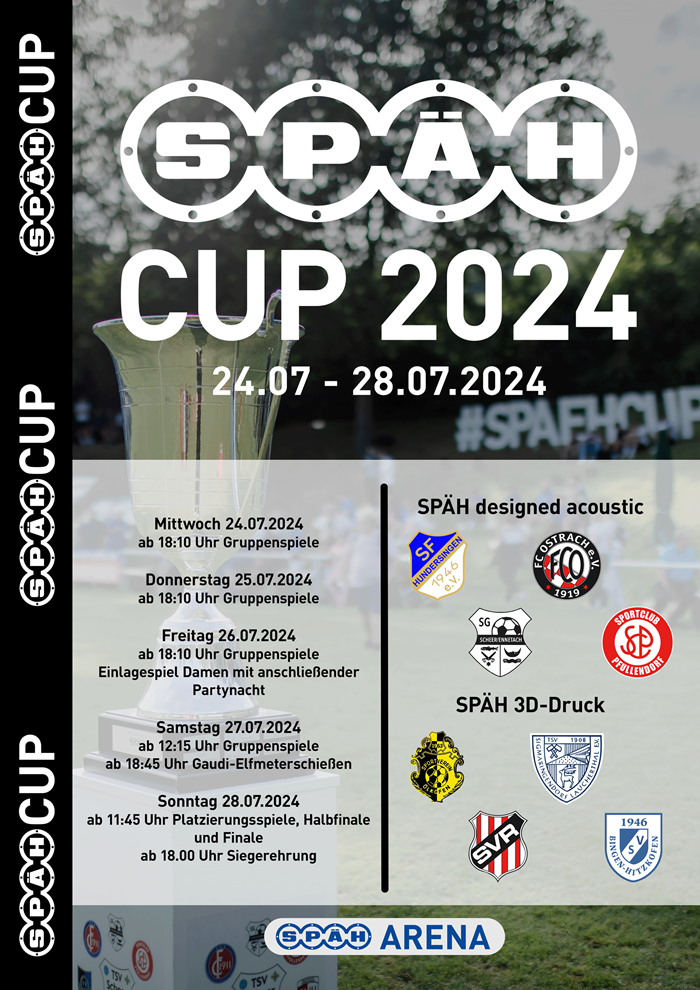 Liebe Fans, Gönner und Freunde des Fußballsports,Der #spaehcup steht wieder vor der Tür. Vom 24.07 - 28.07 kämpfen 8 Teams um den begehrten Henkelpott!!